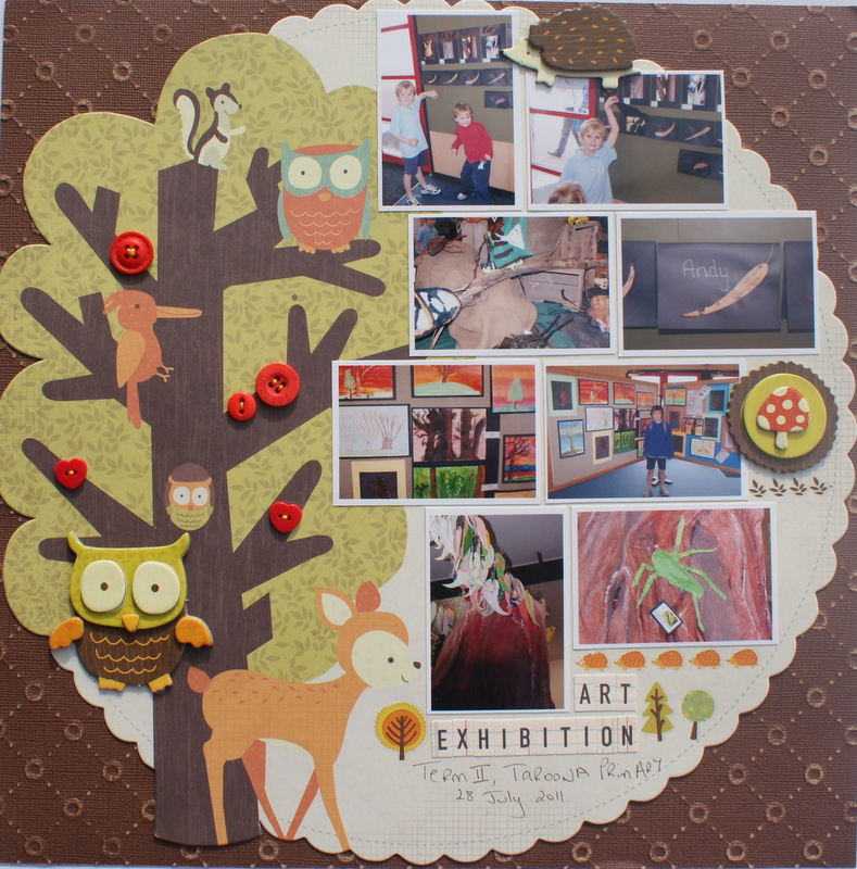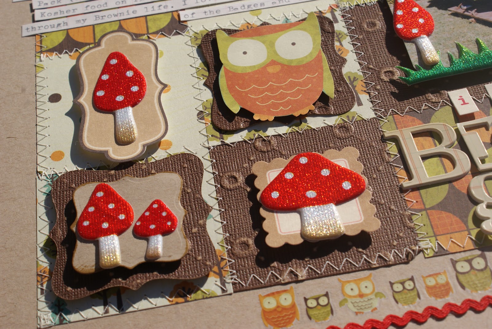 Gorgeous Kaiser Tiny Woods papers and rubons, Cardstock by Coredinations, Stickers by October Afternoon, Large Alphas by making Memories, Toadstools by Flourish with a Bling